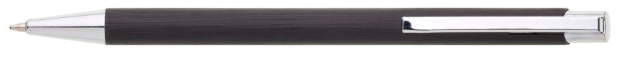 Černá kovová propiska s jemně rýhovaným povrchem.