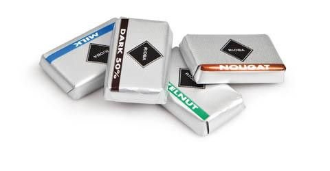 Prémiová kolekce švýcarské čokolády značky Rioba. Čokoládky jsou jednotlivě balené po 4,6g. V balení je mix čtyř druhů čokolád.