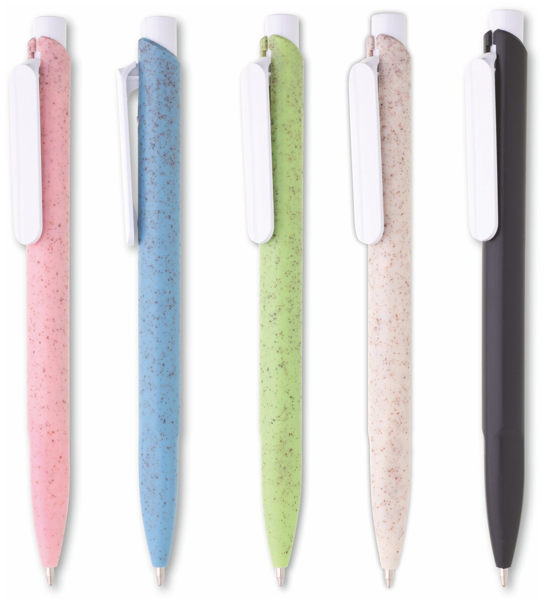 Tělo propisky MALA má ergonomický úchop a obsahuje ze 60 % pšeničnou slámu a ze 40 % ABS, cvakátko a klip jsou bílé, tělo je černé. Jednorázová náplň X20, modře píšící.