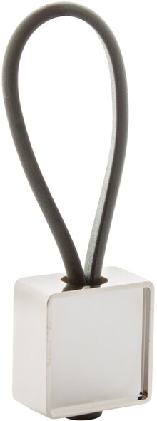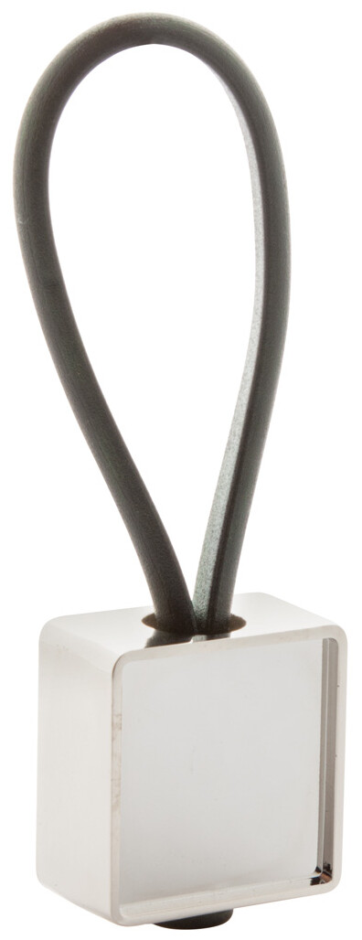 Čtvercový přívěšek na klíče s černým gumovým poutkem s epoxy potiskem.