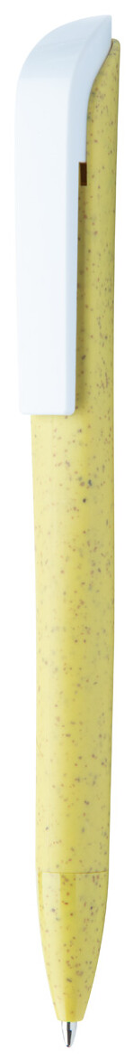 Ekologické plastové kuličkové pero ze slámy s bílým klipem a modrou náplní.