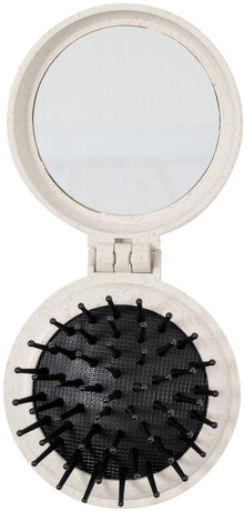 Skládací, ekologický plastový kartáč na vlasy z pšeničné slámy se zrcátkem.