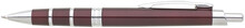Metalické bordové tělo s chromovými ozdobnými kroužky a chromovými doplňky. Náplň velkoobsahová, modře píšící.