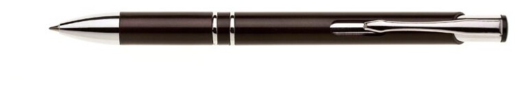 Plastové propisovací pero OIRA BLACK - černé. Pero je zdobené dvěma stříbrnými proužky. Na těle je zdobeno oválným výřezem. Pero má náplň velkoobsahovou, černě píšící.