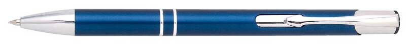 Plastové propisovací pero OIRA BLACK - modré. Pero je zdobené dvěma stříbrnými proužky. Na těle je zdobeno oválným výřezem. Pero má náplň velkoobsahovou, černě píšící.