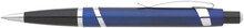 Tmavě modré tělo je doplněno černou špičkou a originálními chromovými doplňky. Náplň velkoobsahová, modře píšící.