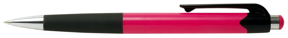 Kuličkové pero GARNA v růžové barvě, úchopová část je černá a pogumovaná. Tužka má pochromované doplňky.