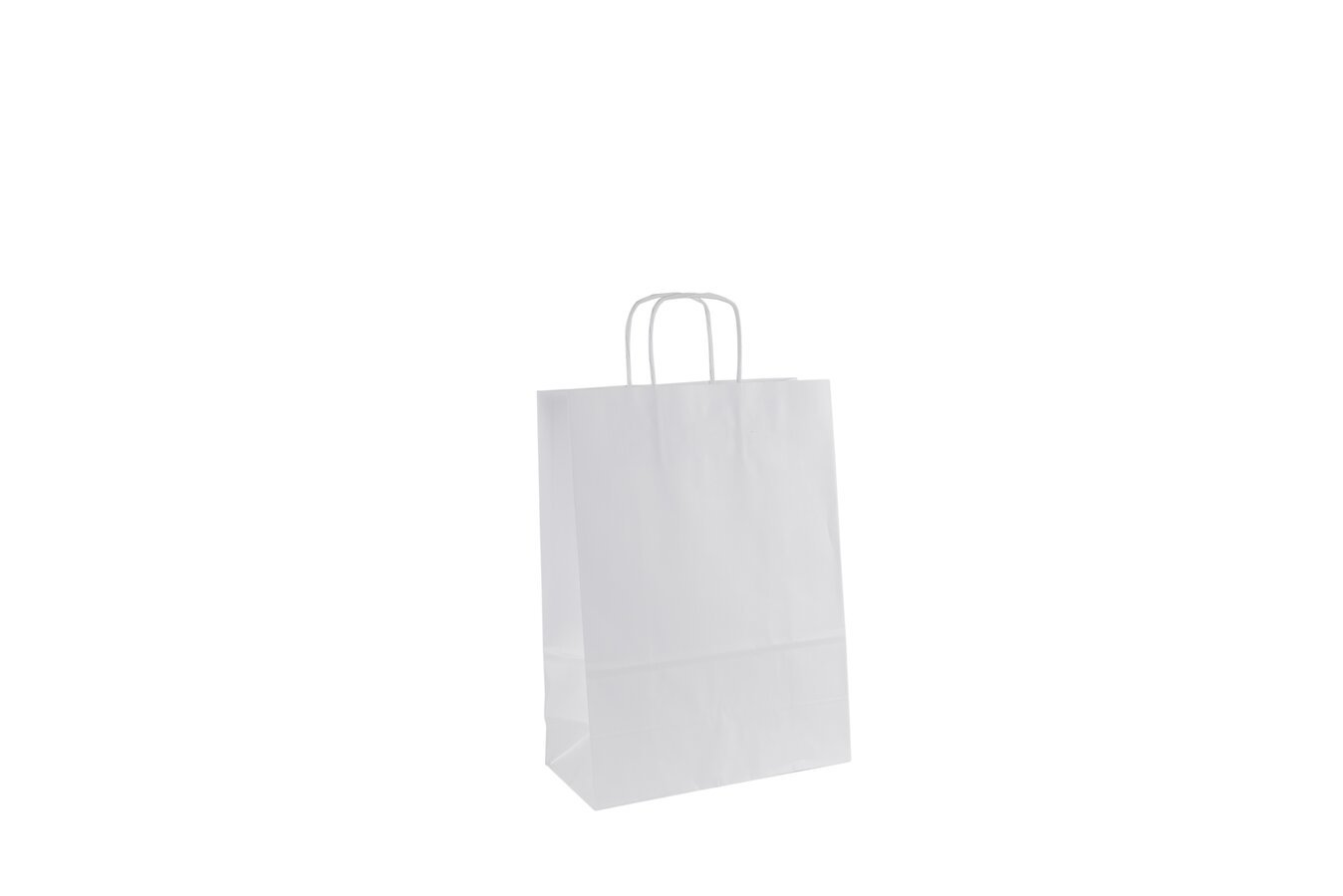 Bílá papírová taška s kroucenými uchy o rozměrech 24 x 11 x 33 cm