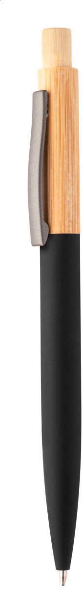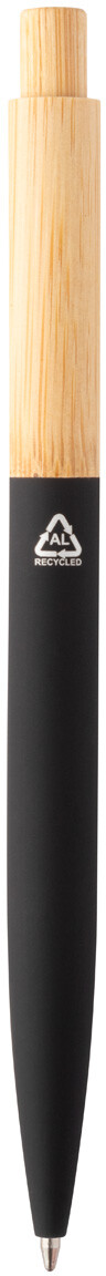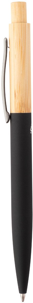 Kuličkové pero z bambusu a recyklovaného hliníku s pogumovaným povrchem a kovovým klipem. S modrou náplní.