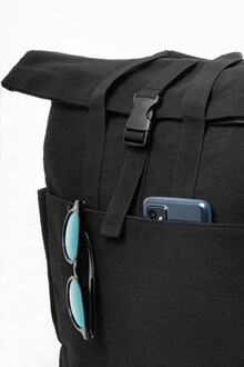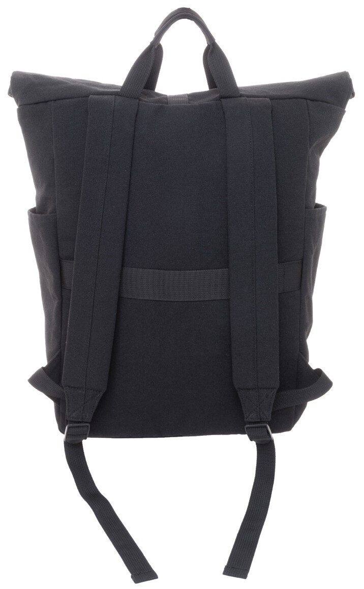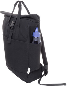 Rolovací batoh z recyklovaného plátna se zapínáním na přezku a suchý zip, polstrovaná přihrádka na notebook (15"), přední a boční kapsy. S popruhem na vozík, polstrovaná záda a ramenní popruhy. 70% recyklované bavlny a 30% RPET polyesteru. S výrazným štítkem z recyklované bavlny.
