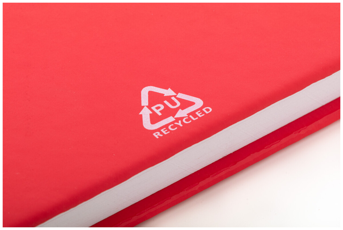 Blok A5 potažený přírodním korkem a recyklovanou PU kůží se záložkou v odpovídající barvě, gumičkou a držákem na pero. S 80 linkovanými listy z recyklovaného papíru.
