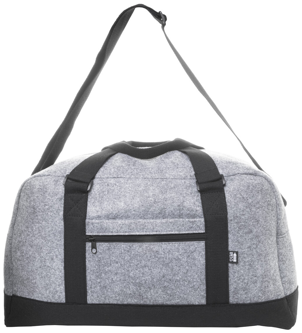 Dvoubarevná sportovní taška z RPET plsti s hlavní přihrádkou na zip, přední kapsou na zip a nastavitelným ramenním popruhem. S výrazným štítkem RPET.