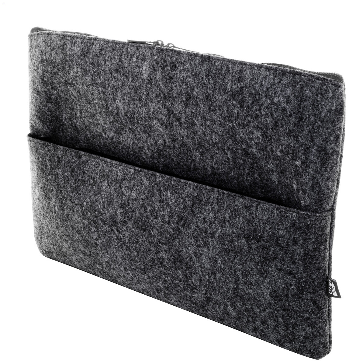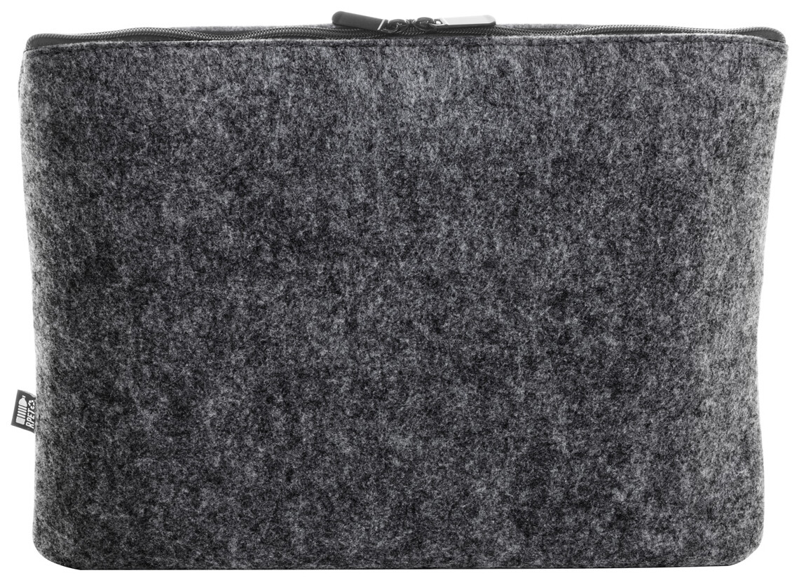 Taška na notebook z RPET plsti s přihrádkou na zip a přední kapsou. Vhodné pro notebooky do 15". S výrazným štítkem RPET.