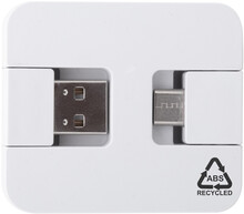 USB hub vyrobený z recyklovaného ABS plastu se 2 USB a 2 USB-C porty. Se sklopnými konektory USB a USB-C. USB 2.0.
