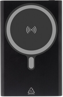 Power banka z recyklovaného hliníku s vestavěnou magnetickou bezdrátovou rychlonabíječkou (15 W) a 5000 mAh baterií. Se vstupem USB-C a portem pro nabíječku. Obsahuje samolepicí kovový kroužek pro použití magnetické funkce na jakémkoli bezdrátovém nabíjecím zařízení. Kompatibilní s iPhone® 12 nebo novějším. USB nabíjecí kabel součástí.