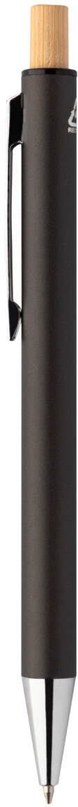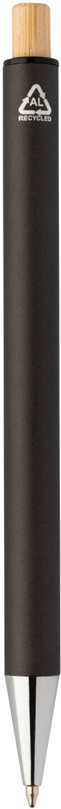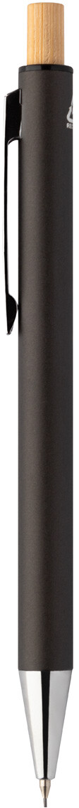 Sada pera z recyklovaného hliníku s kuličkovým perem a mechanickou tužkou s bambusovými knoflíky. S modrou náplní a 0,7 mm tuhy. V kraftové papírové krabici.
