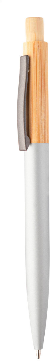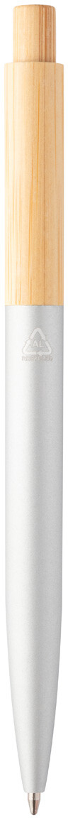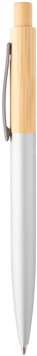 Kuličkové pero z bambusu a recyklovaného hliníku s pogumovaným povrchem a kovovým klipem. S modrou náplní.