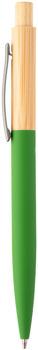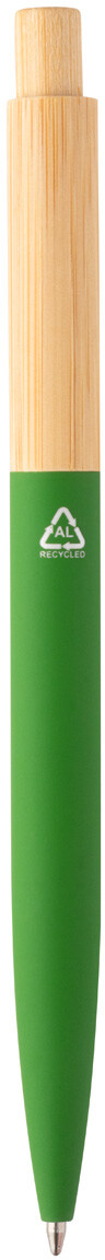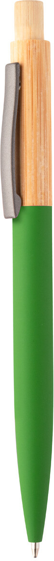 Kuličkové pero z bambusu a recyklovaného hliníku s pogumovaným povrchem a kovovým klipem. S modrou náplní.