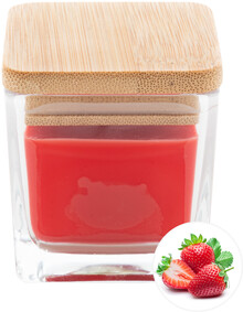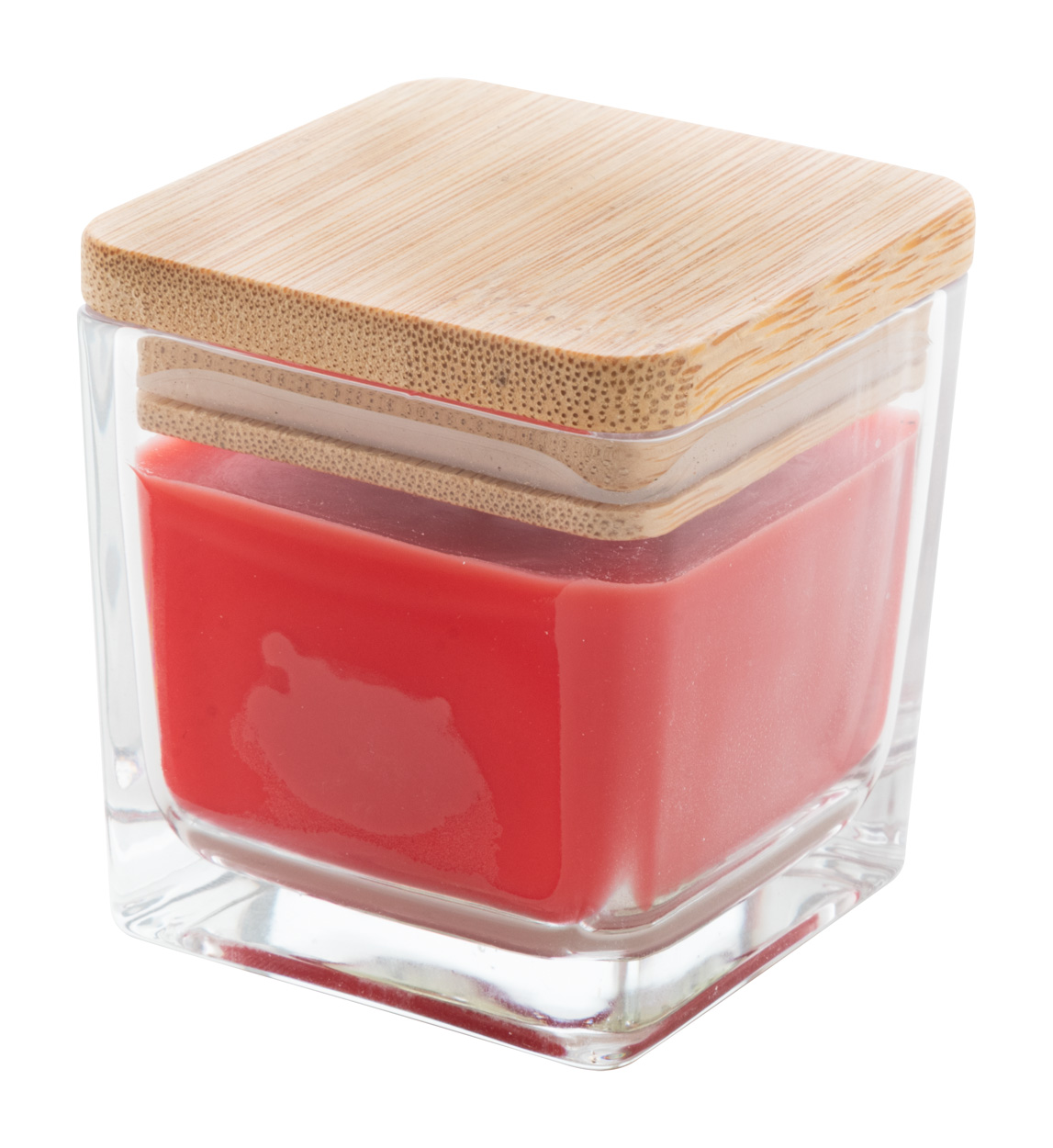 Vosková svíčka na rostlinné bázi ve skleněném držáku s bambusovým víčkem. S 50 gramy vosku. Doba hoření: 8 hodin. V kraftové papírové krabici.