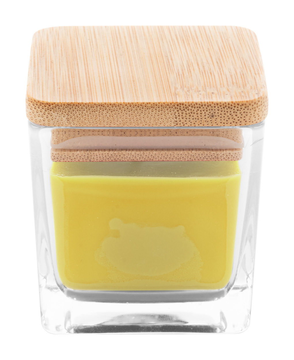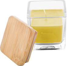 Vosková svíčka na rostlinné bázi ve skleněném držáku s bambusovým víčkem. S 50 gramy vosku. Doba hoření: 8 hodin. V kraftové papírové krabici.