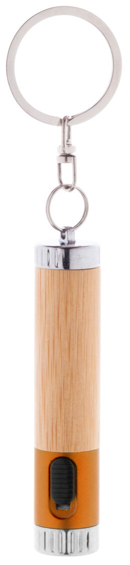 Mini svítilna z bambusu a recyklovaného ABS plastu s 1 LED a kovovým kroužkem na klíče. S knoflíkovou baterií.