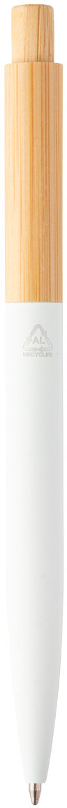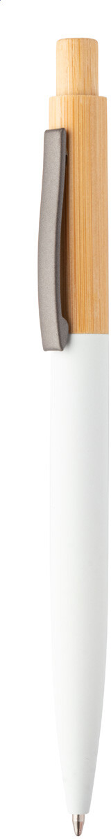 Kuličkové pero z bambusu a recyklovaného hliníku s pogumovaným povrchem a kovovým klipem. S modrou náplní.
