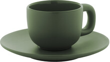 Vysoce kvalitní sada keramických šálků na espresso se 2 šálky a podšálky. S matnou vnější a lesklou vnitřní povrchovou úpravou. 85 ml. V kraftové papírové krabici.