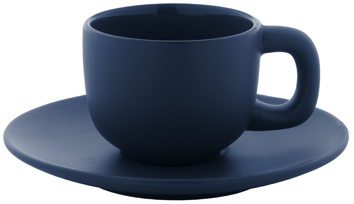 Vysoce kvalitní sada keramických šálků na espresso se 2 šálky a podšálky. S matnou vnější a lesklou vnitřní povrchovou úpravou. 85 ml. V kraftové papírové krabici.