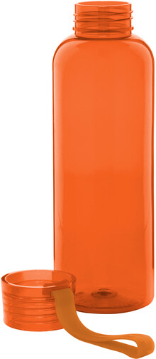 Láhev RPET s víčkem v odpovídající barvě a silikonovým popruhem, 500 ml. Nevhodné pro sycené nápoje.