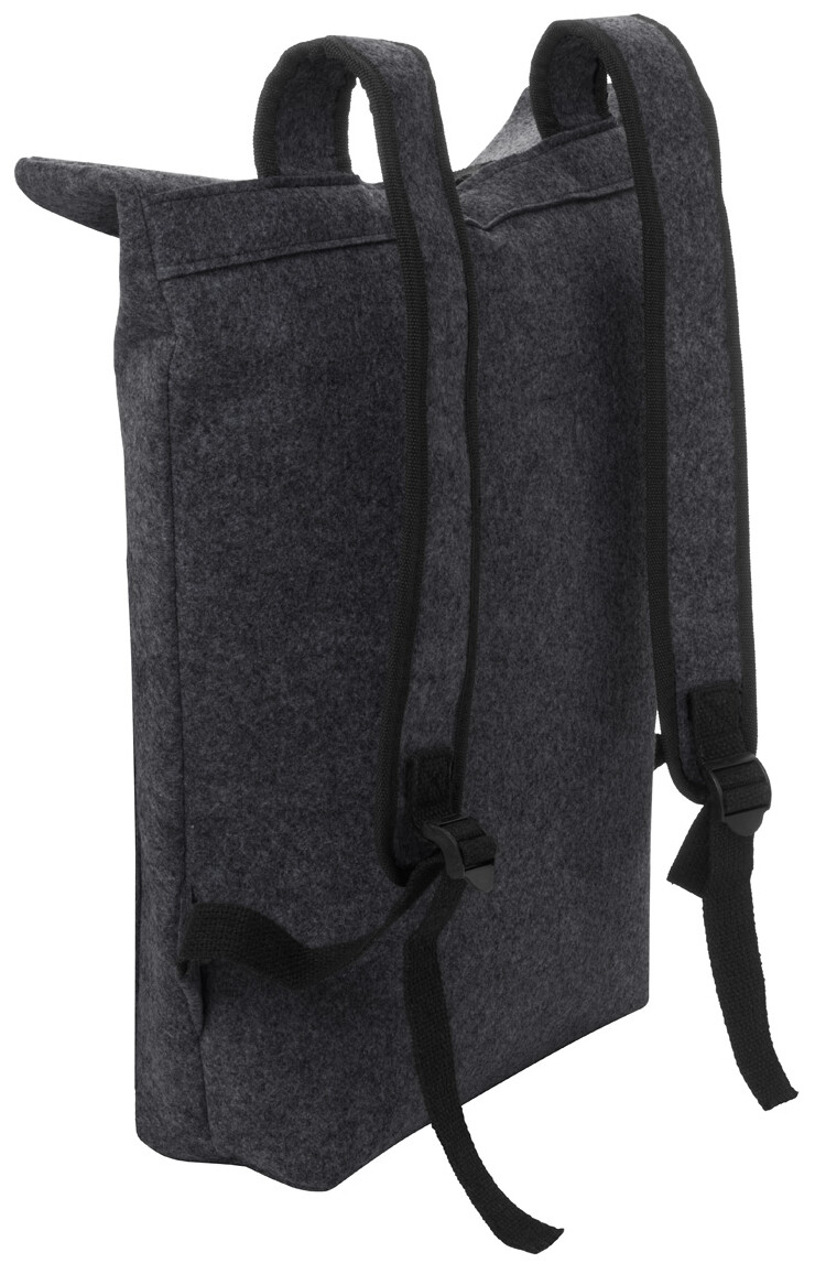 Batoh na rolování z plsti RPET s hlavní přihrádkou na přezku a přední kapsou na zip, přihrádkou na notebook (15") a polstrovanými ramenními popruhy. S výrazným štítkem RPET.