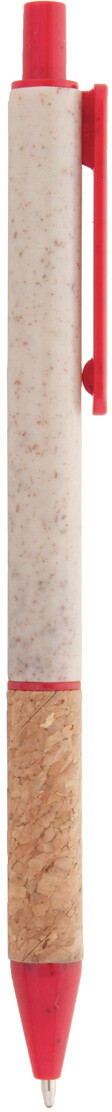 Ekologické plastové kuličkové pero z pšeničné slámy s přírodním korkem a barevnými částmi. S modrou náplní.