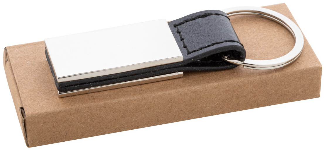 Přívěšek na klíče z kovu a PU kůže. V kraftové papírové krabičce.