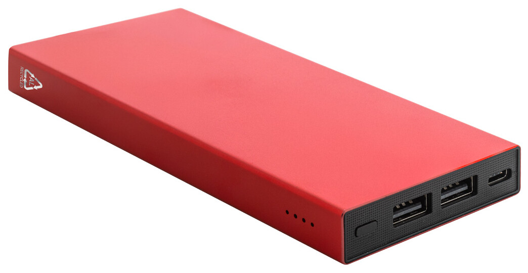 Power banka z recyklovaného hliníku s 10000 mAh baterií. Se 2 porty USB a 1 portem USB-C pro nabíječku. Vstupní port USB-C. Včetně USB nabíjecího kabelu.