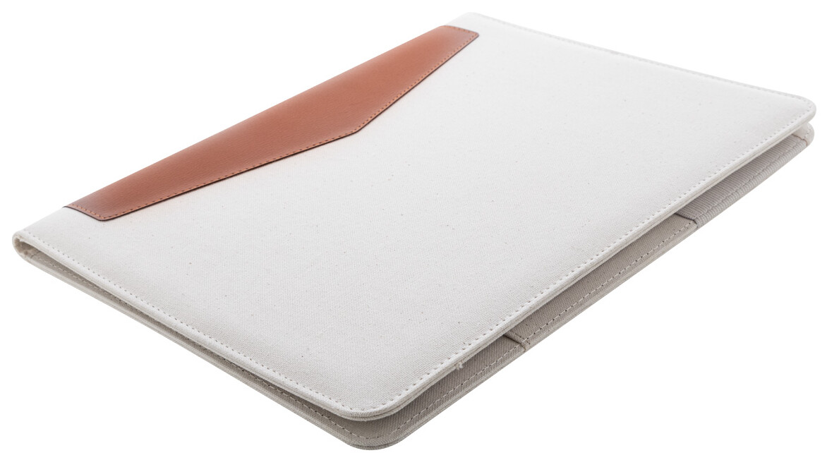 Sloha A4 na dokumenty z recyklovaného plátna a recyklované PU kůže s několika vnitřními kapsami na organizér. S 20 linkovanými listy poznámkového bloku z recyklovaného papíru. 70% recyklovaná bavlna a 30% RPET polyester.