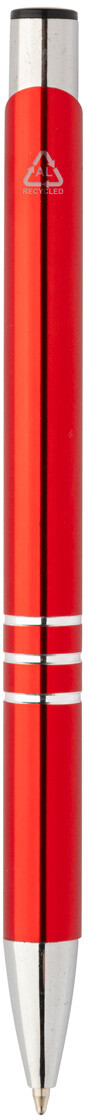 Kuličkové pero z recyklovaného hliníku s metalickým povrchem a modrou náplní.