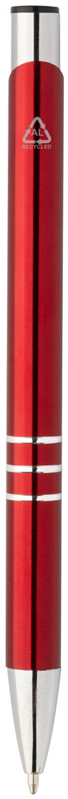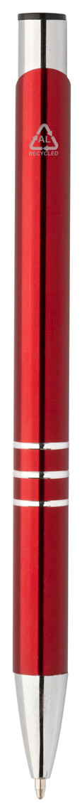 Kuličkové pero z recyklovaného hliníku s metalickým povrchem a modrou náplní.