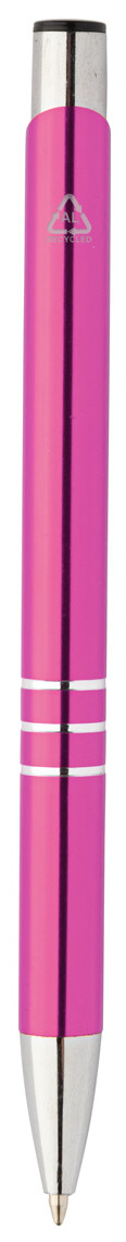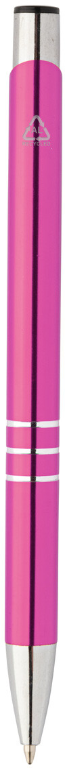 Kuličkové pero z recyklovaného hliníku s metalickým povrchem a modrou náplní.