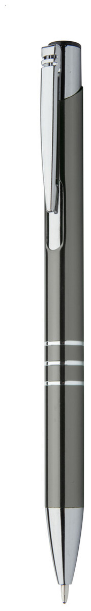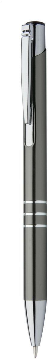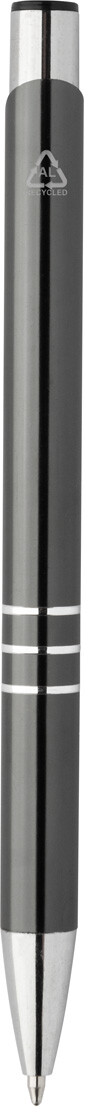 Kuličkové pero z recyklovaného hliníku s metalickým povrchem a modrou náplní.