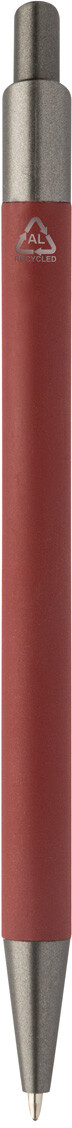 Kuličkové pero z recyklovaného hliníku s pogumovaným tělem a kovovými částmi. S modrou náplní.