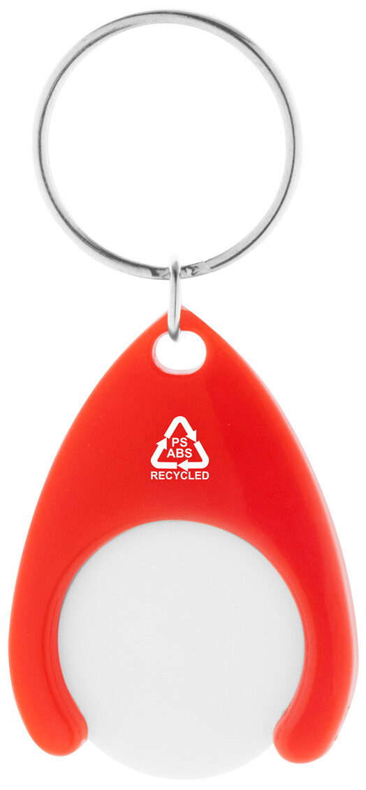 Přívěšek na klíče z recyklovaného ABS a recyklovaného plastu PS se žetonem do nákupního vozíku a kovovým kroužkem. Velikost mince: ø24×2 mm.