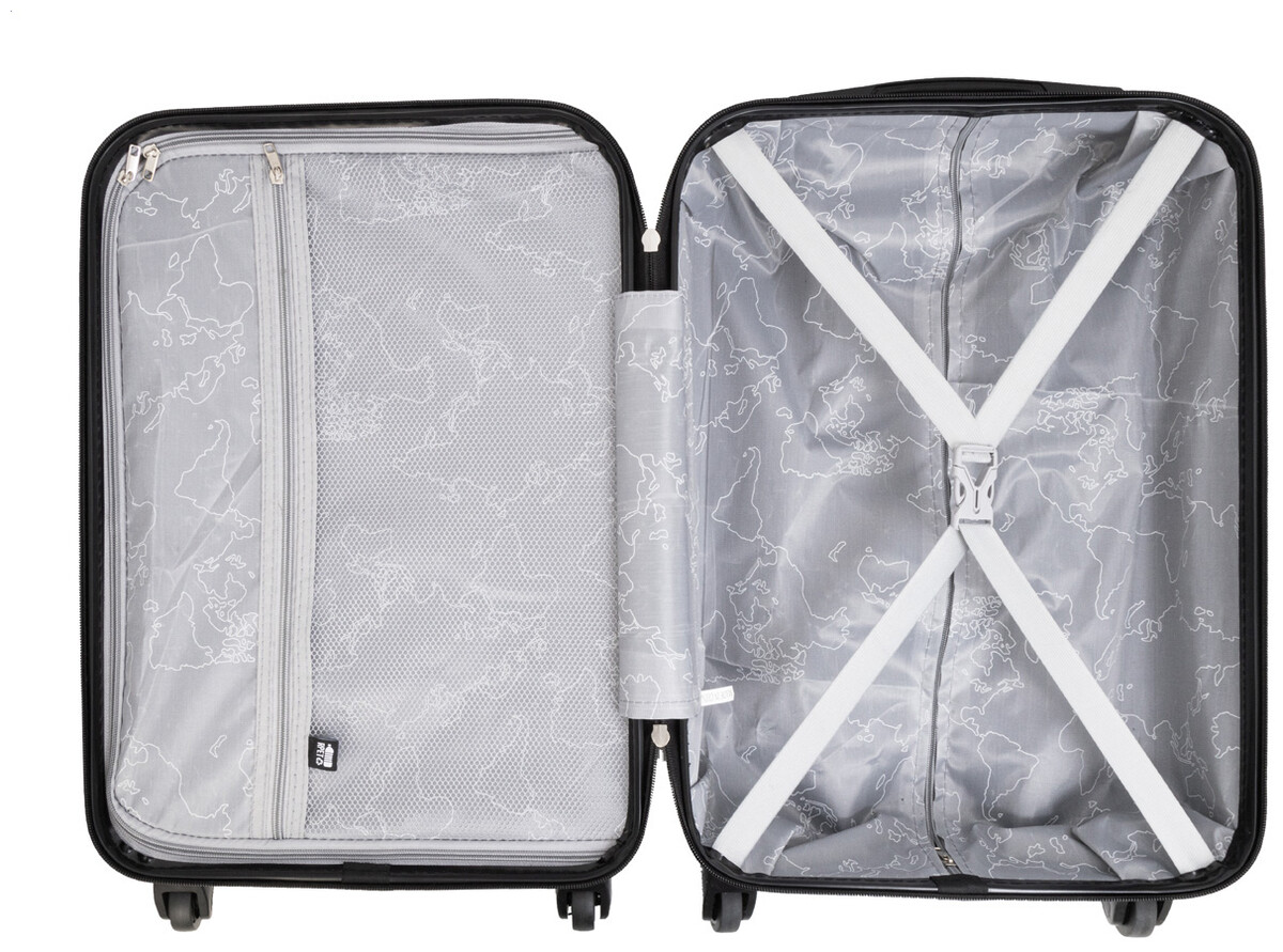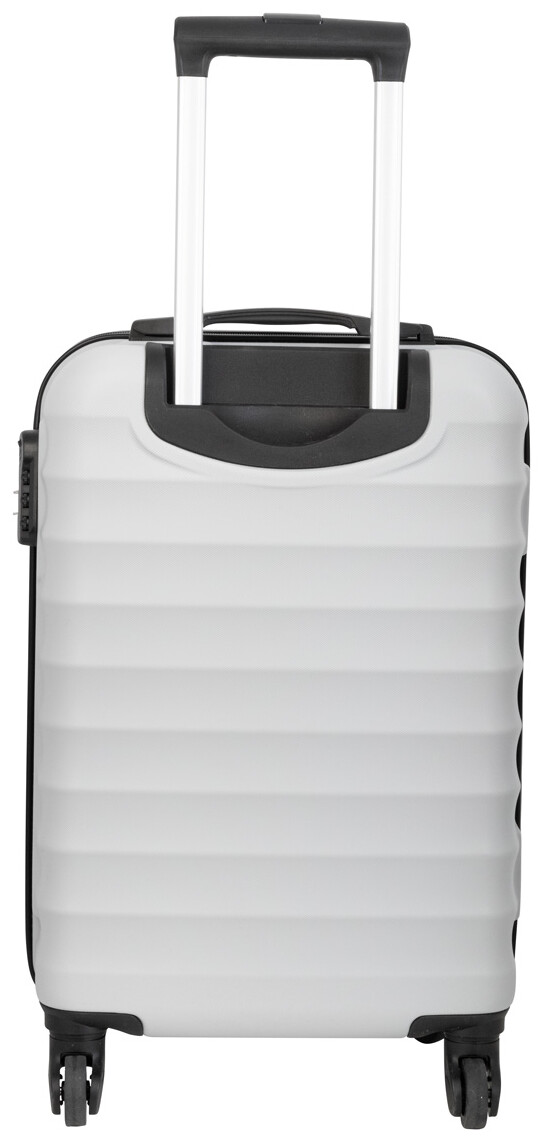 20palcová příruční taška na kolečkách s pevnou skořepinou z materiálu RPET se 4 kolečky, teleskopickou rukojetí a kombinovaným zámkem. S vnitřní podšívkou z RPET a elastickými upevňovacími popruhy. S kovovou destičkou pro gravírování loga