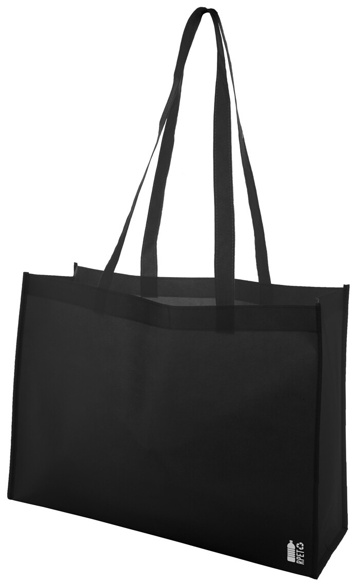 Nákupní taška z netkané textilie RPET s klínem a dlouhými uchy, 80 g/m2. S výrazným logem RPET.