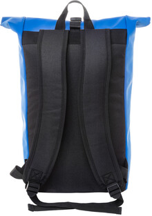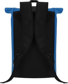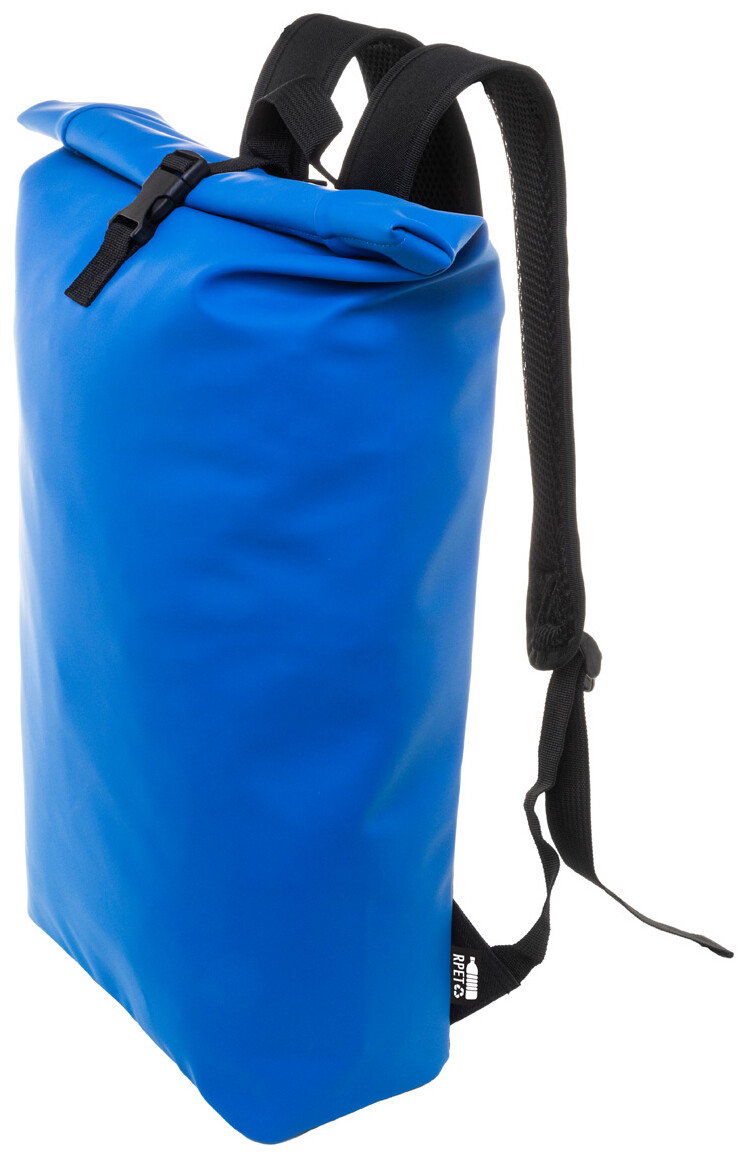 Vodotěsný, měkký rolovací batoh z recyklované PU kůže se zapínáním na přezku, přední kapsou na zip a polstrovanou přihrádkou na notebook (15"). S polstrovanými zády a ramenními popruhy. S výrazným recyklovaným PU štítkem.