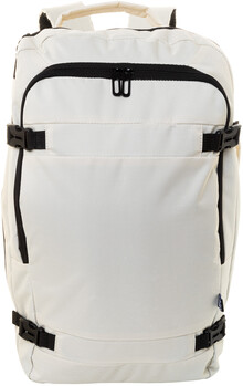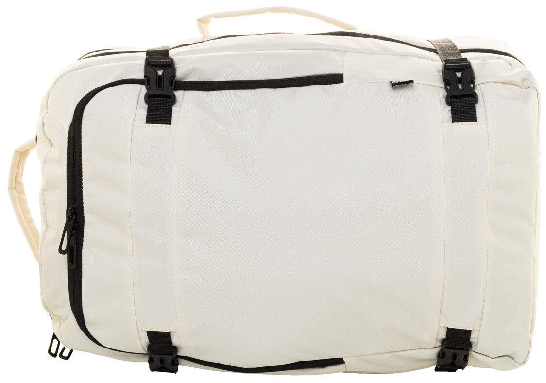 Dvojfunkční RPET batoh a taška na dokumenty se 2 přihrádkami na zip, přední kapsou na zip a polstrovanou přihrádkou na notebook (15"). S kapsou proti krádeži, popruhem na vozík, polstrovanými zády a ramenními popruhy. Polyester 600D RPET, s výrazným štítkem RPET.