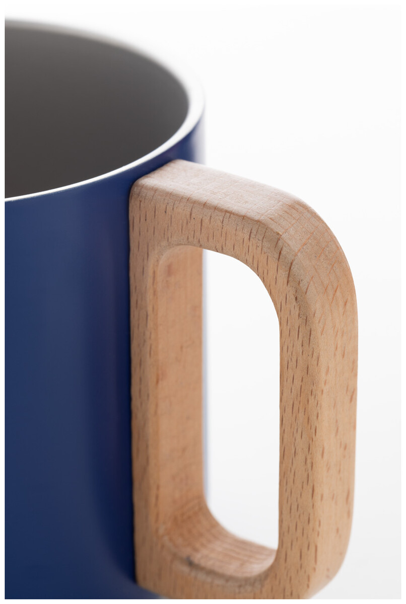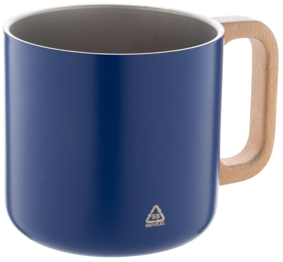 Dvoustěnný termo hrnek z recyklované nerezové oceli s dřevěným uchem. 350 ml.
