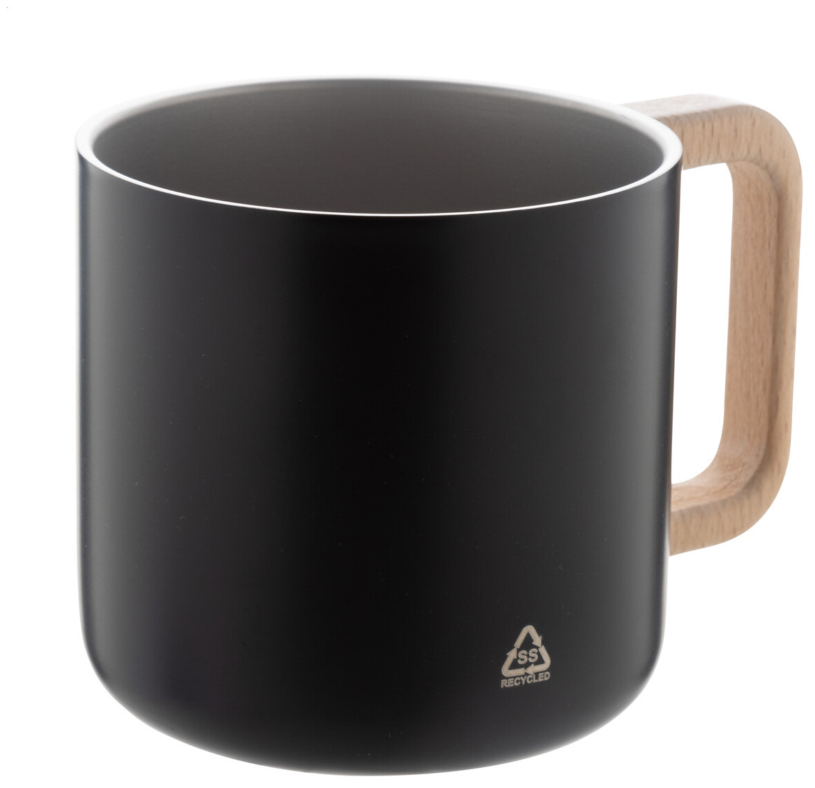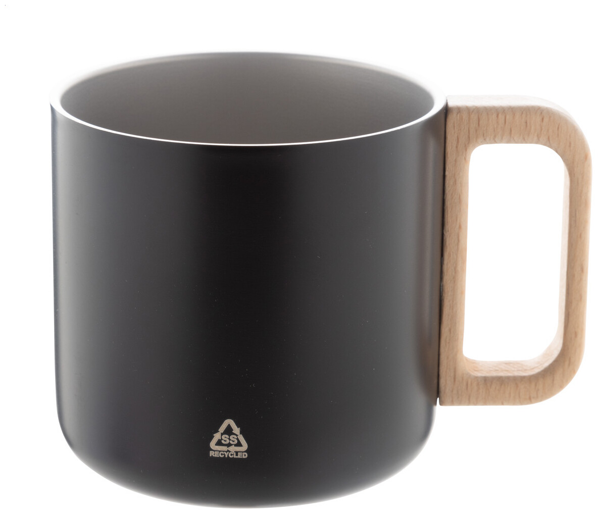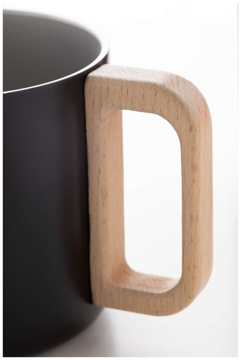 Dvoustěnný termo hrnek z recyklované nerezové oceli s dřevěným uchem. 350 ml.