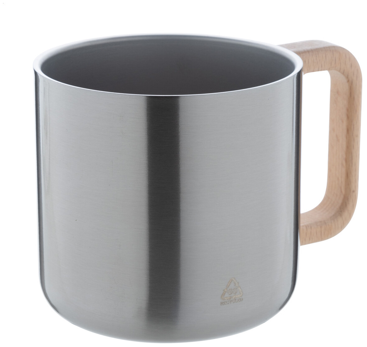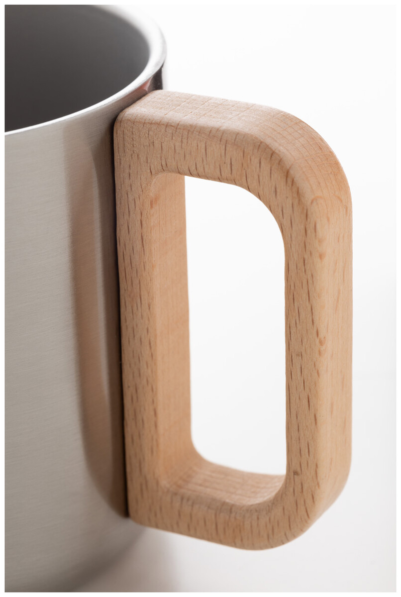 Dvoustěnný termo hrnek z recyklované nerezové oceli s dřevěným uchem. 350 ml.