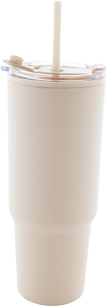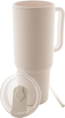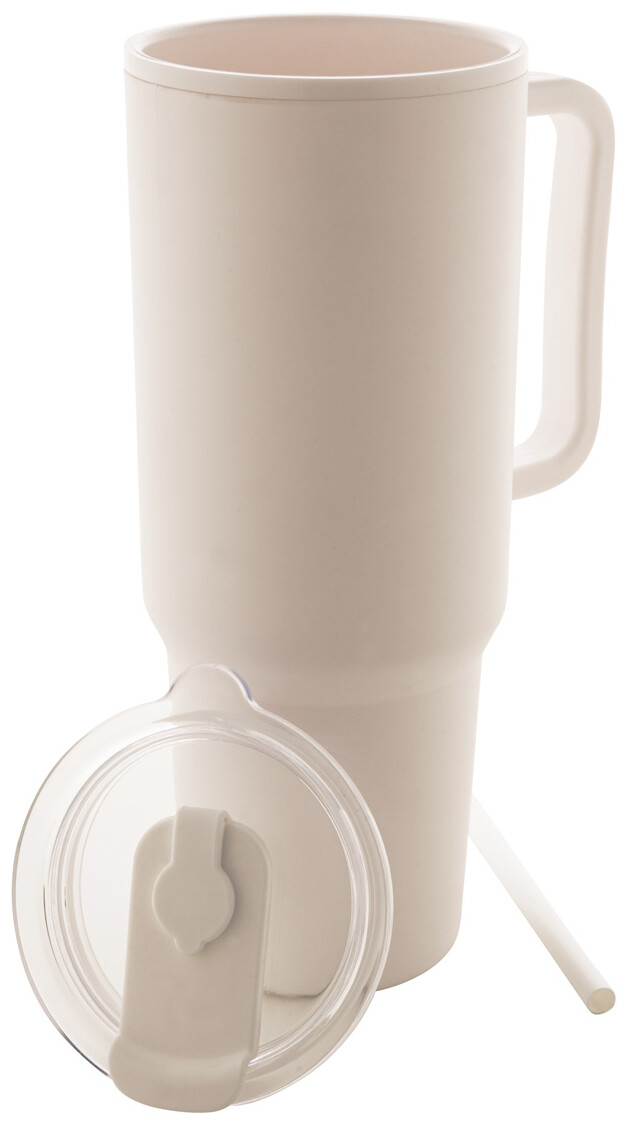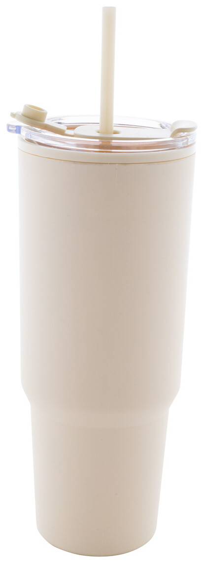 Dvoustěnný termo hrnek izolovaný PP plastem s víčkem na pití a brčkem. 1100 ml.