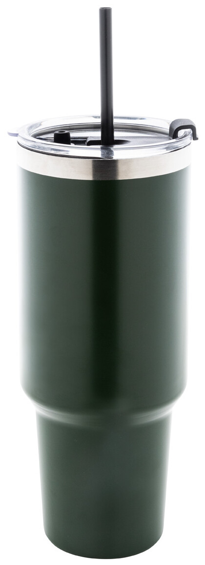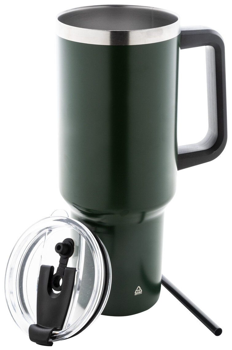Dvouplášťový vakuově izolovaný termo hrnek z recyklované nerezové oceli s PS víčkem na pití a PP brčkem. 1200 ml.