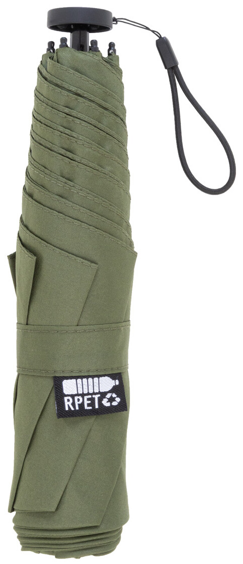 Manuální, větruodolný 3-skládací ultralehký (130 g) mini deštník se 6 panely v pouzdru v odpovídající barvě. S kovovým rámem, sklolaminátovými žebry a kompaktní rukojetí s poutkem na ruku. Pongee 190T RPET, s výrazným štítkem RPET.